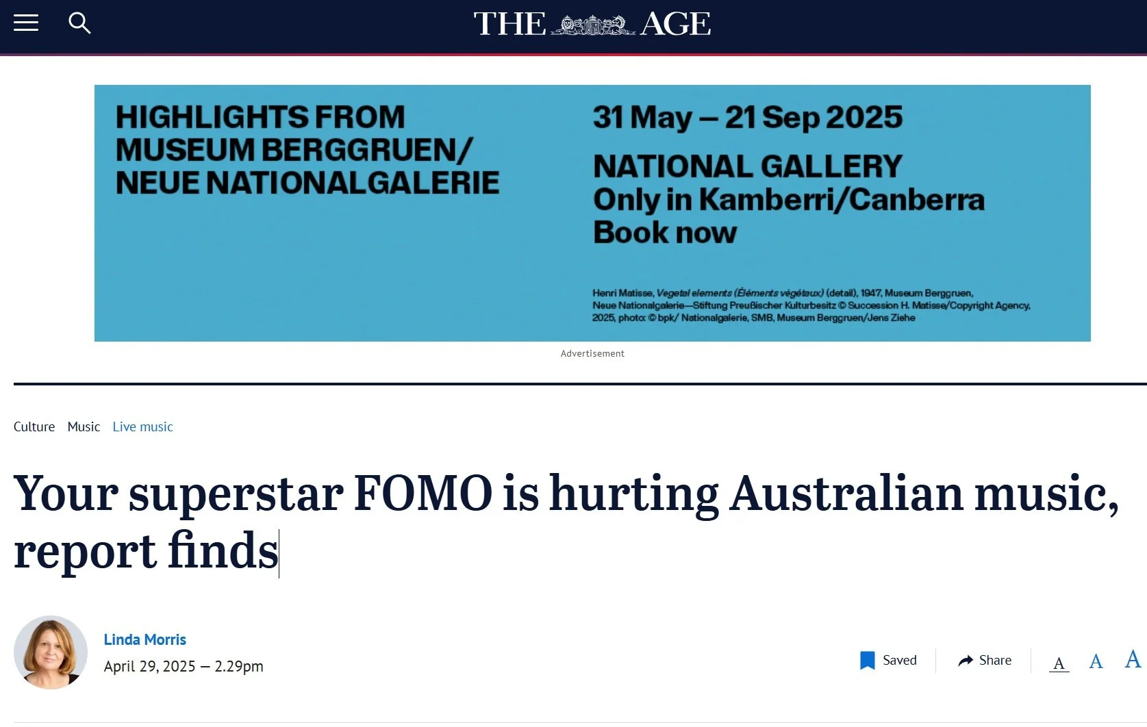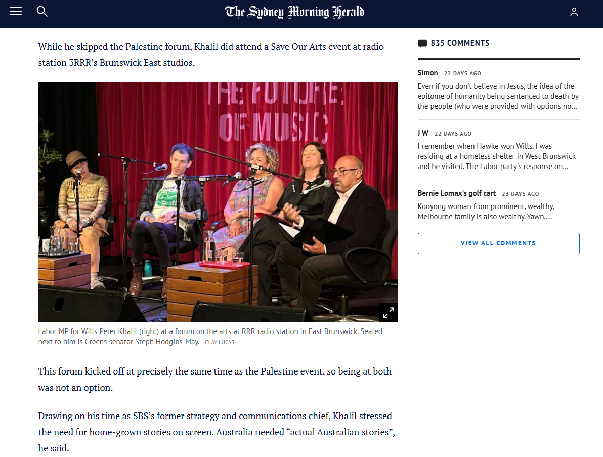 The Sydney Morning Herald covered close national seats and the Save Our Arts campaign held in music stronghold, RRR. Link