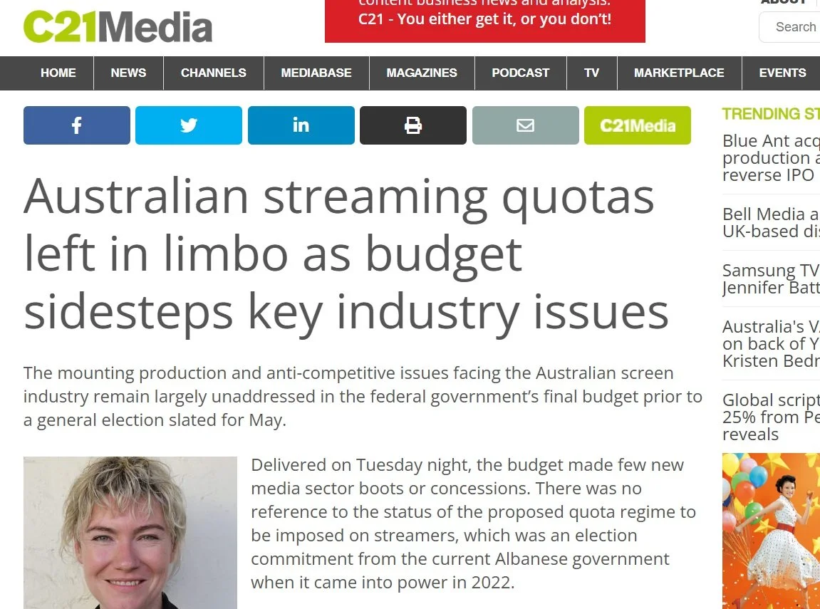 Save Our Arts’ Campaign Director, David Latham, spoke with screen industry pub C21 to make the case for local content quotas. Link