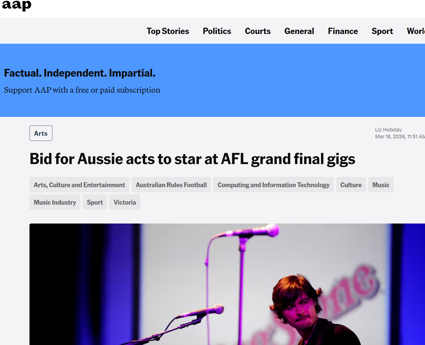 Darren Middleton from Powderfinger and Dr Ben Eltham from Home Ground/ Save Our Arts make the case for Australian music to headline the AFL Grand Final. Link