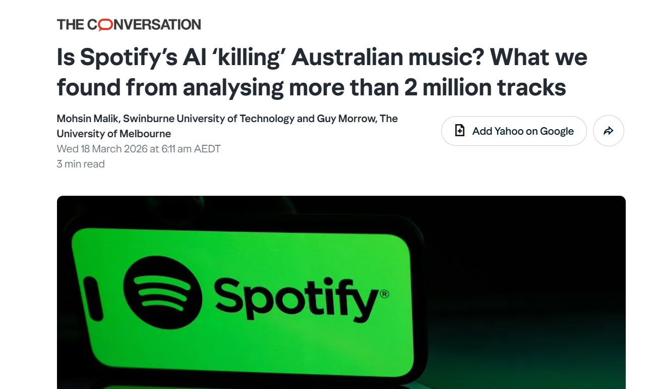 A/Prof Guy Morrow of the Save Our Arts Policy Sub Committee and A/Prof Moshin Malik write about the impact of Spotify on Oz music. Link
